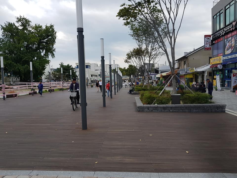 계단 맨위에 펼쳐진 다리에 서면 흙바닥이 절반넘게 깔린 하천이 양 옆으로 펼쳐진다. 다리 끝까지도 가보고 싶었지만 폰을 충전해야 해서 발길을 시장쪽으로 돌렸다.